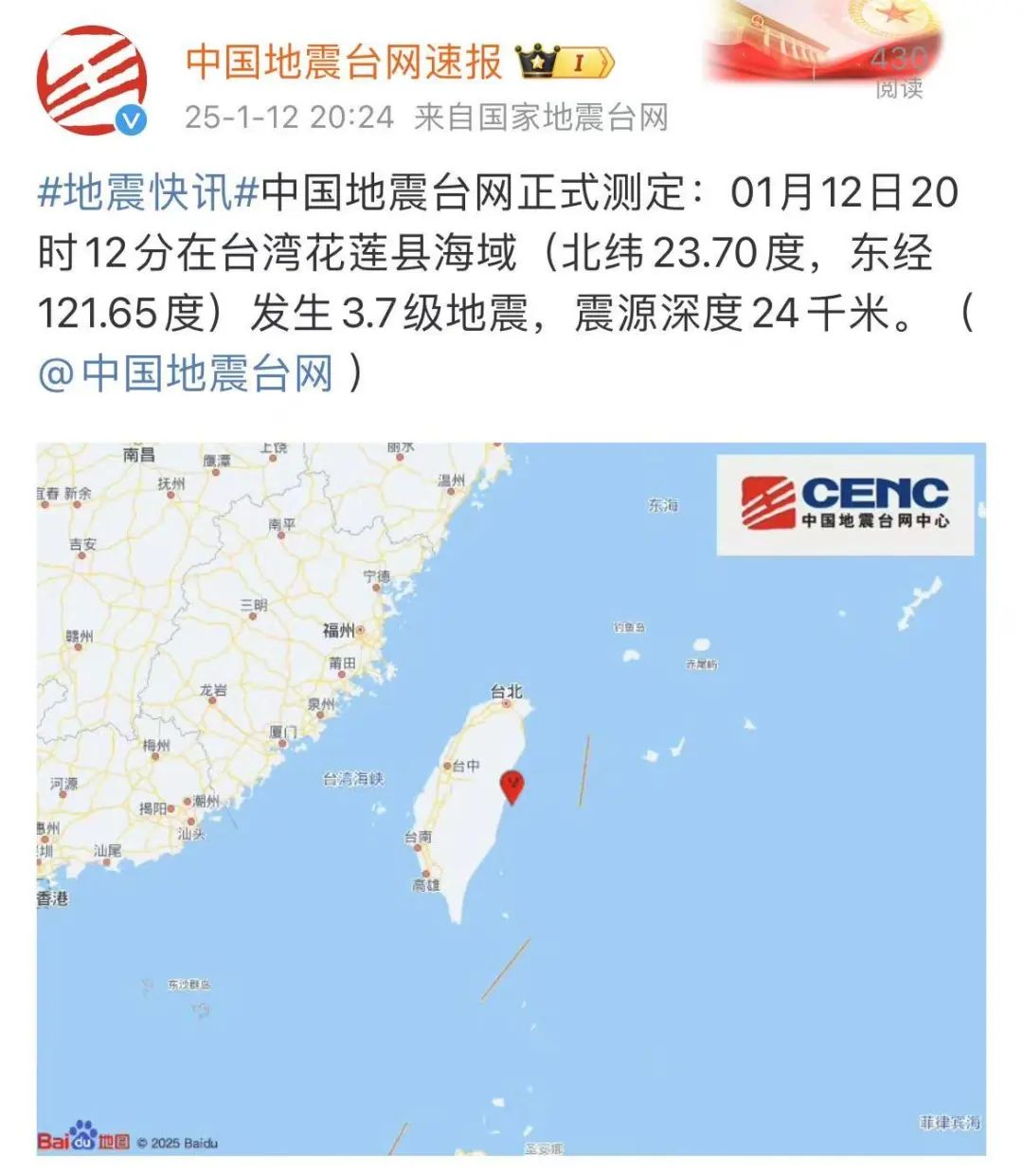 據(jù)中國地震臺(tái)網(wǎng)測定,最近一次臺(tái)灣地震發(fā)生在XX月XX日,震源深度較深,對(duì)臺(tái)灣部分地區(qū)造成了一定影響,地震發(fā)生時(shí),震感強(qiáng)烈,部分建筑物出現(xiàn)搖晃,幸運(yùn)的是,目前尚未收到重大人員傷亡和財(cái)產(chǎn)損失報(bào)告。