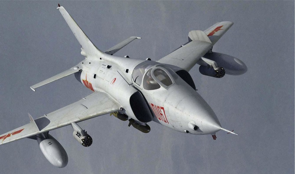 強(qiáng)5攻擊機(jī)是一款具備良好低空飛行性能的攻擊機(jī),其外形特征顯著,機(jī)身采用三角翼布局,翼尖處融合發(fā)動機(jī)短艙,整體線條流暢,其機(jī)身長度適中,便于攜帶多種武器和裝備,尾部采用單垂尾設(shè)計(jì),使得整機(jī)外觀簡潔大方。