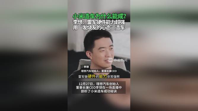 李想談及對(duì)雷軍的評(píng)價(jià)時(shí)表示,雷軍的硬件實(shí)力非凡。他強(qiáng)調(diào)雷軍的團(tuán)隊(duì)在技術(shù)研發(fā)、生產(chǎn)制造以及供應(yīng)鏈管理等方面擁有卓越的能力和深厚的經(jīng)驗(yàn)。雷軍的公司在硬件領(lǐng)域擁有強(qiáng)大的競(jìng)爭(zhēng)力,不斷推出高品質(zhì)、高性能的產(chǎn)品,贏得了消費(fèi)者的信任和喜愛。李想認(rèn)為,雷軍的硬件實(shí)力是其成功的關(guān)鍵之一,也是他一直在行業(yè)內(nèi)備受推崇的原因之一。