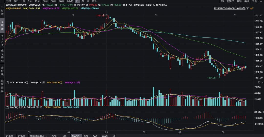 1、長期趨勢:貴州茅臺股份長期趨勢向好,隨著中國消費(fèi)升級和白酒市場的持續(xù)增長,貴州茅臺憑借其品牌優(yōu)勢、產(chǎn)品質(zhì)量以及獨(dú)特的釀酒工藝,在市場上保持了較高的競爭力。
