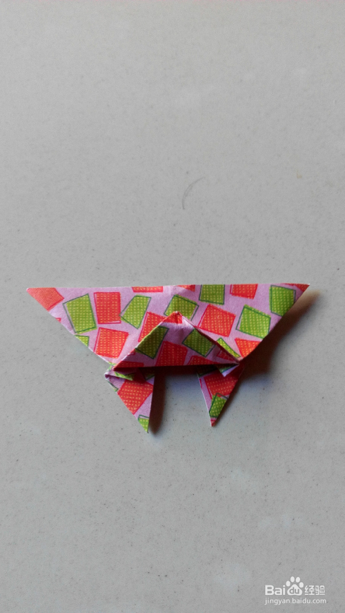 3、將三角形的左側(cè)角向上對折,使其與頂端邊緣對齊,右側(cè)也進(jìn)行同樣的操作,紙張呈現(xiàn)出一個小正方形。