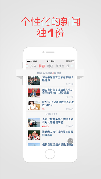 2、定制閱讀:您可以根據(jù)自己的興趣和喜好,定制喜歡的頻道和欄目,方便您快速獲取關(guān)注的資訊。